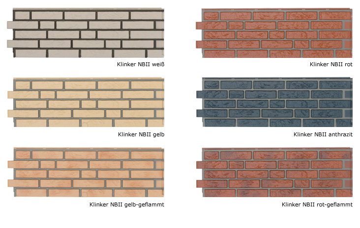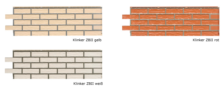 Zierer Klinker GFK Kunststofffassaden - Farben:weiß,gelb,rot,anthrazit,gelb-gefl.,rot-geflammt