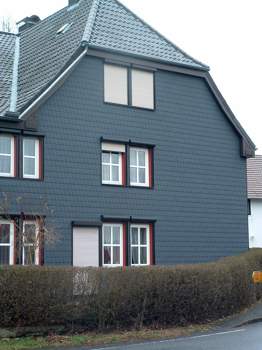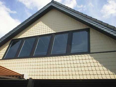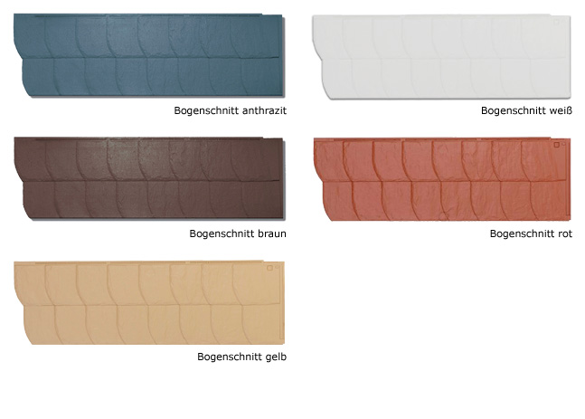 Zierer Schiefer Bogenschnitt GFK Kunststofffassaden - Farben:anthrazit und braun Sonderfarben:weiß, gelb rot