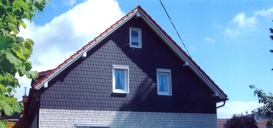 Zierer Schiefer Bogenschnitt GFK Kunststofffassaden - Verlegung mit Wärmedämmung bis 40 % Heizkostenersparnis!